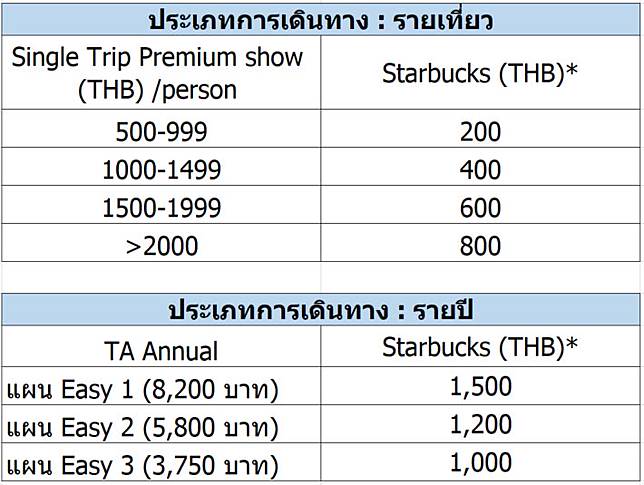 • รายละเอียดแผนประกันภัย พร้อมรับสิทธิพิเศษบัตร Starbucks e-Coupon* ดังนี้