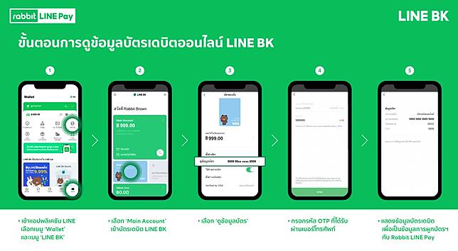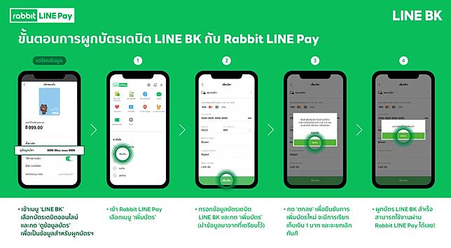 ขั้นตอนการผูกบัตรเดบิต LINE BK กับบัญชี Rabbit LINE Pay เพื่อเป็นช่องทางการชำระเงิน - ผูกบัตรฯ ได้ ใช้จ่ายที่ไหนก็สะดวก
