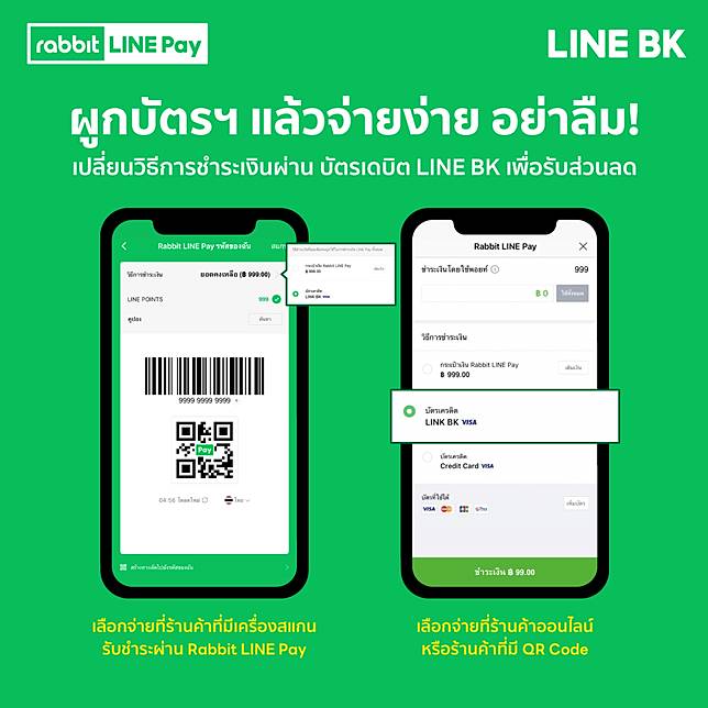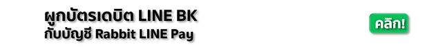 4. ผู้ถือบัตรเดบิต LINE BK สามารถศึกษาวิธีการผูกบัตรเดบิต LINE BK ในบริการ Rabbit LINE Pay ได้ที่ https://lin.ee/1ztkXlgJO/hjxc