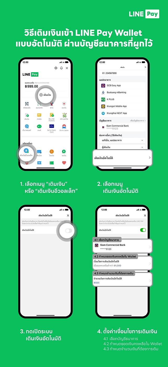 หลังจากผูกบัญชีธนาคาร (ช่องทางที่ 2) เรียบร้อยแล้ว ลูกค้าสามารถเปิดฟังก์ชันการเติมเงินแบบอัตโนมัติได้เลย