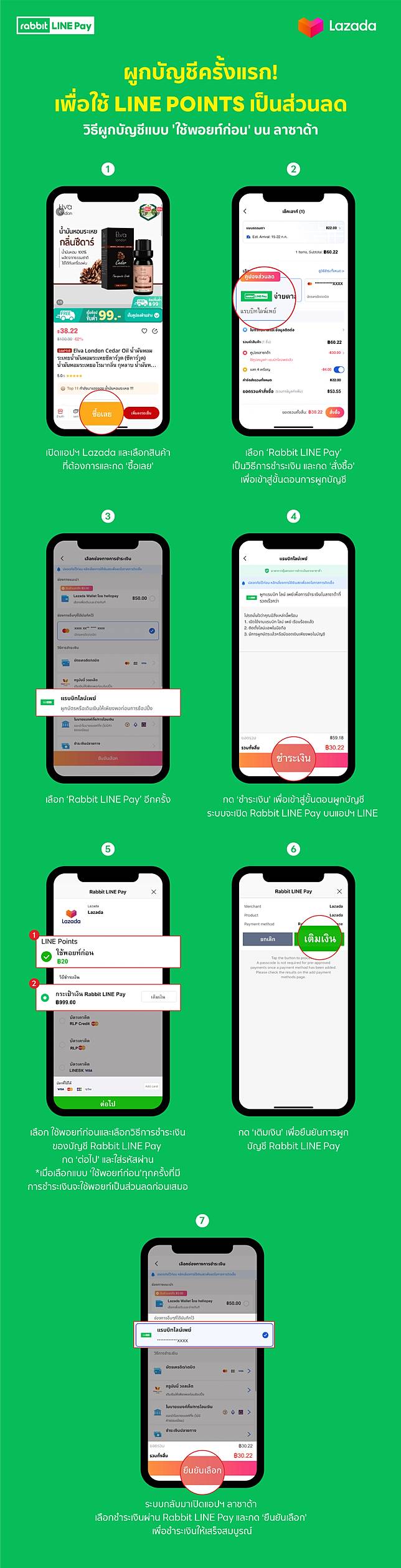 1. Rabbit Line Pay users receive THB 50 discount when purchasing eligible items on Lazada App or www.lazada.co.th with a minimum purchase amount of THB 350 before deducting all discounts and exclusive of shipping on 8 - 9 August 2022 (limited to 1 time/Lazada account/promotional period).