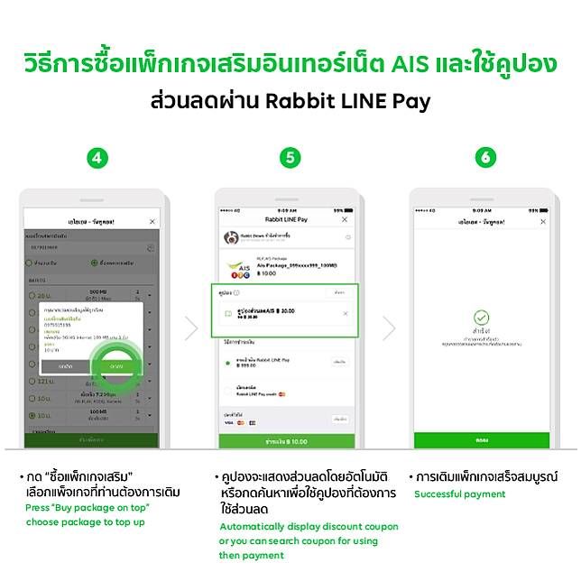 เงื่อนไขการซื้อแพ็กเกจเสริมผ่าน Rabbit LINE Pay