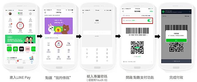 - 步驟4. 輸入LINE Pay專屬密碼(或使用Touch ID)