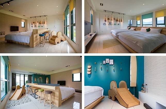 若是親子旅行非常推薦選擇以動物為主題的熊出沒四人房、童趣象四人房,不只有可愛的動物主題,房內也有簡單的遊戲設施,另外也提供兒童電動車、腳踏車等,光是在民宿就能讓孩子玩得不想離開。