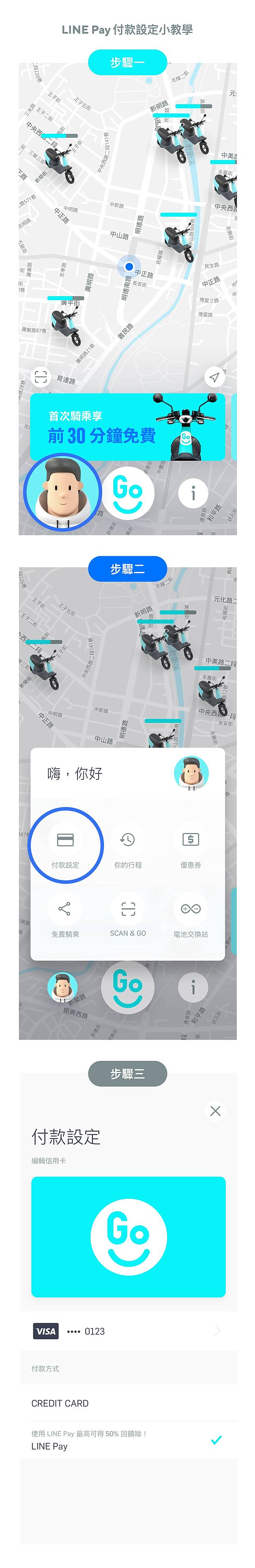 - GoShare應用程式請更新至2.1.0版本(更新後建議重新開機並確認是否有LINE Pay付款選項)