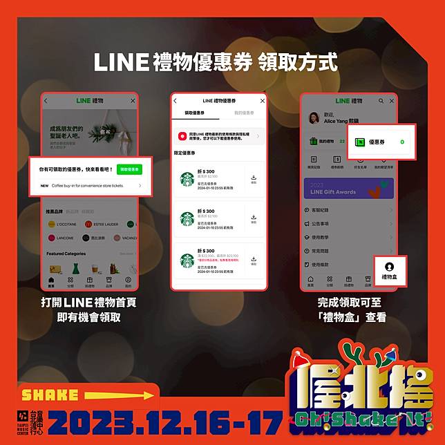 到LINE禮物攤位完成小任務即可免費體驗🎄莎莉聖誕主題濾鏡🎅🏻