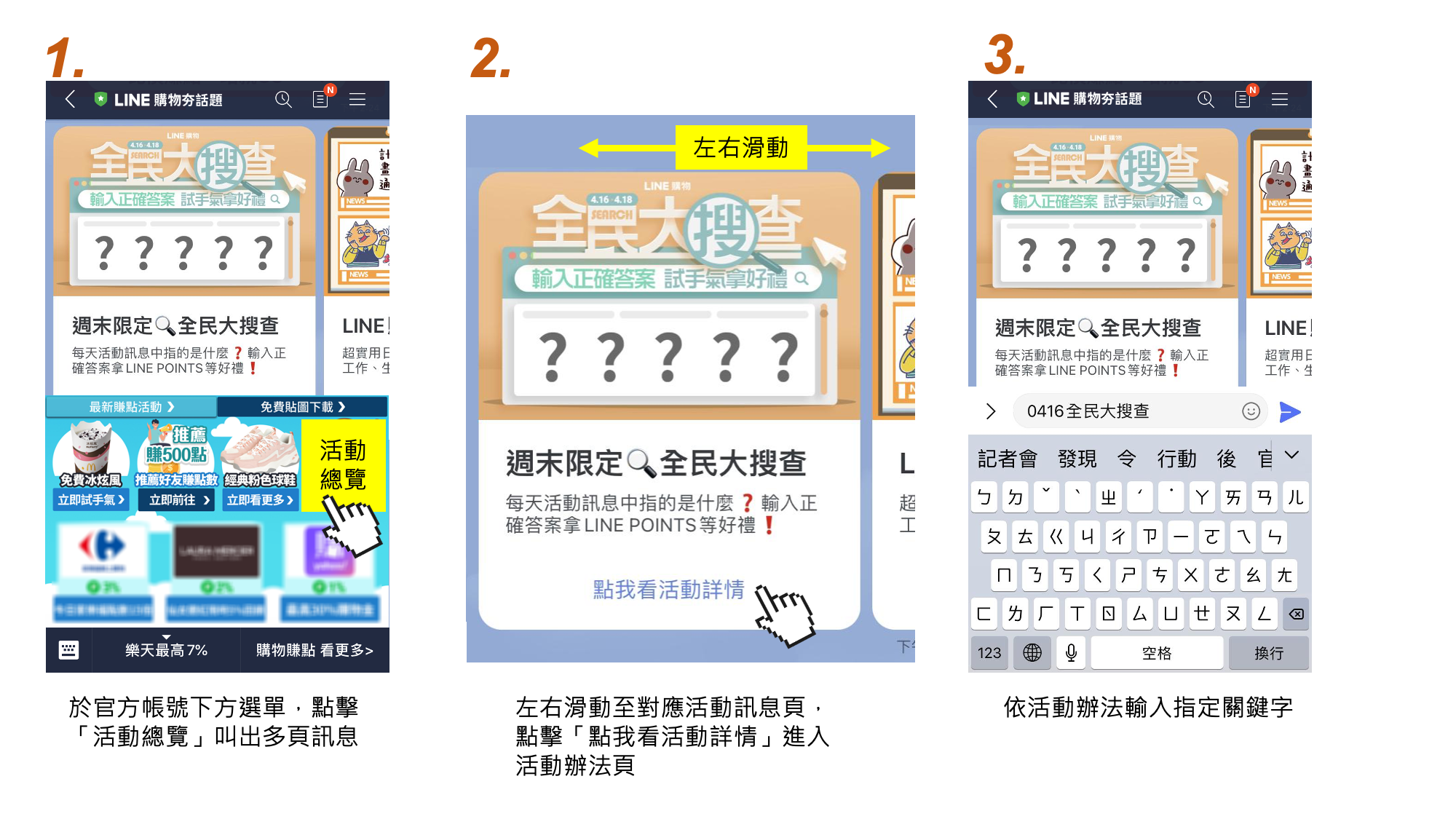 (二)每日於官方帳號可透過以下3種方式取得活動資訊: