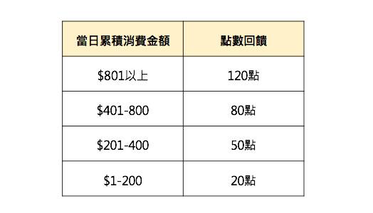 - 三間超商合併計算,消費級距擇優回饋,不得要求重複回饋次等級距之贈點
