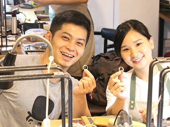 銀質戒指、單圈線戒自由配…等,大多數款式轉角都會提供「紅銅材料」先作練習,有信心了再來作銀材料,過程中都有老師陪同協助指導,體驗都是一人即成團。