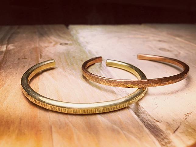 材質提供純銀、黃銅、紅銅材質可作選擇。款式則有鍛敲紋戒指、純銀戒指、雙環珍珠戒指、鍛敲手環等等,可搭配水波紋、木質紋效果創作。體驗一人即成團。