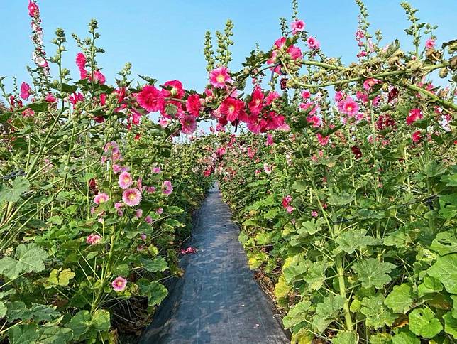 位在彰化有一處「田中窯創藝園區」具有「全台灣最大的蜀葵花花海迷宮」的美稱,2.5公頃的園區中種了多達兩萬五千株的蜀葵花,紅、白、粉、紫不同花色一起炸開,一望無際比人還高的蜀葵花形成夢幻的花叢迷宮,讓人有置身異國的錯覺,漫步其中十分浪漫。