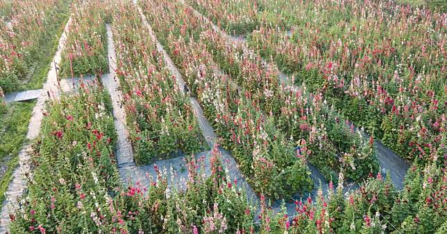 每年2月中旬就是蜀葵花的季節,隨著天氣日漸回暖,彰化這處「全台灣最大的蜀葵花花海迷宮」已迎來盛開期,彰化田中窯創藝園區(看地圖)裡擁有紅色、白色、粉色、桃紅色、淺黃色等不同花色的蜀葵花,兩萬五千株的蜀葵花齊放爭豔,超級壯觀!