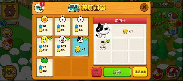 查看左邊的訂單需求,並收成/製作必要的物品給客人完成貨車任務,只要完成10個訂單(趟) 即算成功。