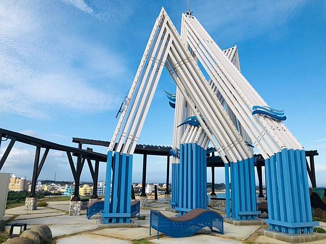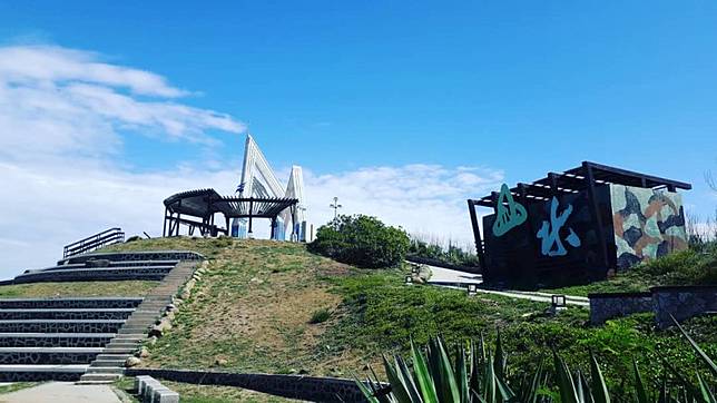 從大義宮旁道路再往上1~2分鐘,可以發現這處鏤空涼亭,雖無遮涼處,不過從這裡看下去的風景相當不錯,也是大家來到竹灣大義宮會順道快閃的打卡景點之一。
