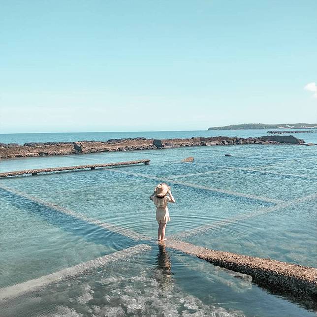 近期同在IG掀起一股打卡熱潮,就是這處位於池西岩瀑前方廢棄九孔養殖場,海水退潮後,堤道在海岸邊橫豎排列,大家紛紛走上堤道拍照,無論是以玄武岩為背景,或向海上那一側拍去,不同的取景角度都有獨特風格,一定都能深得你心。