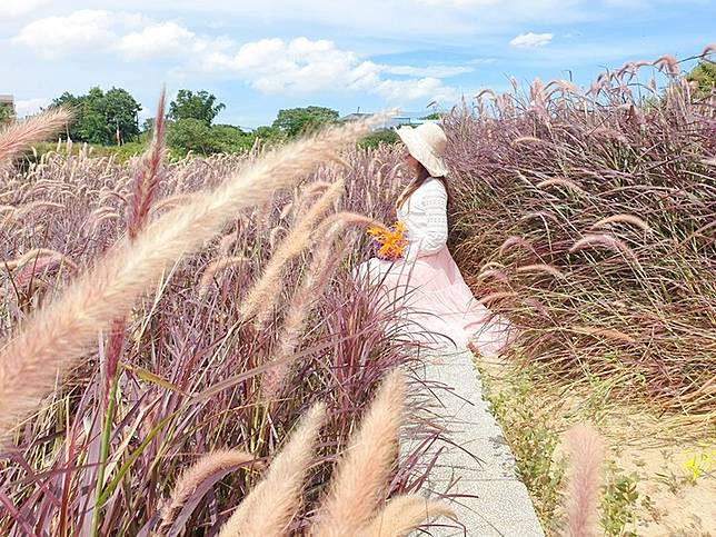 桃園經國重劃區附近有一處「紫夢狼尾草」秘境(看地圖),陽光下穗芒煥發的光暈極其夢幻,造型與顏色也十分獨特,在微風的吹拂之下展現柔美的姿態,整片大地被染成夢幻的紫色,輕輕鬆鬆就能拍出浪漫的氛圍。