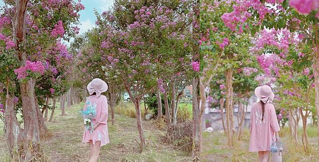每年6-9月是紫薇花開的季節,現在苗栗苑裡有一處秘境正盛開著粉色系的紫薇花海,免費開放給遊客參觀。
