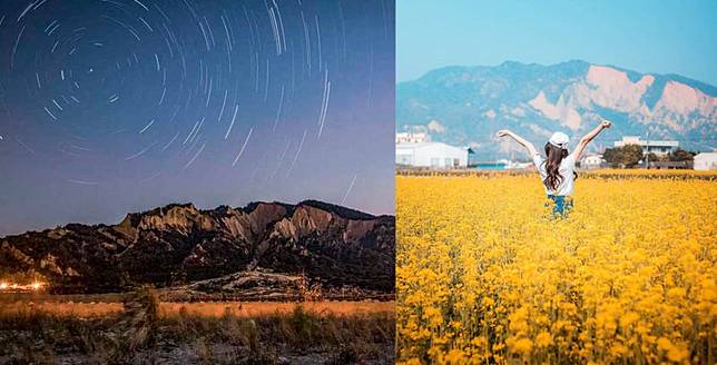 季節限定的花海,搭上以險峻地形著稱的火炎山,意外碰出新火花,來到火炎山周邊,大家可能會在這裡找到油菜花田、向日葵田等等,稻田種植期間,也有綠油油稻田美景以及成熟的黃色稻穗可搭配取景,也是不少人熱愛的構圖。