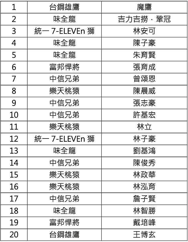 依照「2025中華職棒明星對抗賽票選辦法」票選組成。