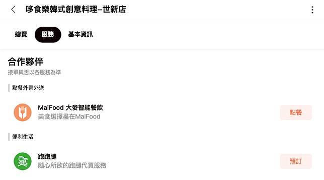 跑跑腿 北部地區立即點擊商家資訊卡下的服務按鈕!
