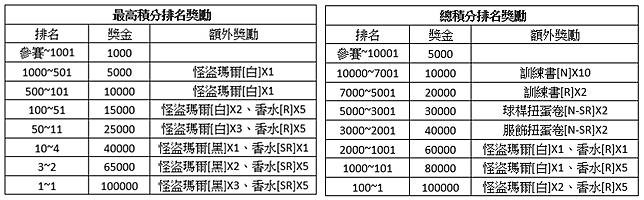 錦標賽的玩法很簡單,主要比的就是單場「最高積分」跟三場累積起來的「總積分」,然後依照這兩個積分去排行,不同名次階級的會拿到不同的獎勵,我將積分排名的獎勵列在下方。