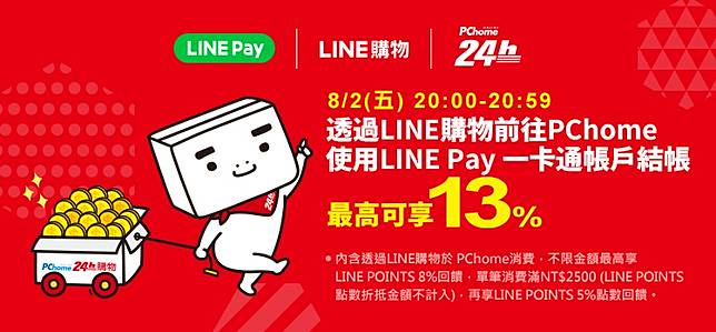4. 本活動僅適用於PChome線上購物 (包含PChome24h購物、PChome購物中心、PChome24h書店,App/官方網站,排除「海外代購及PChome旅遊」),是否可使用LINE Pay付款依商品頁面標示為主。