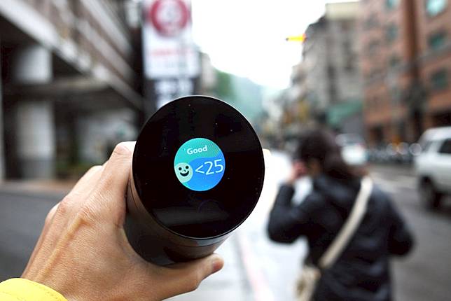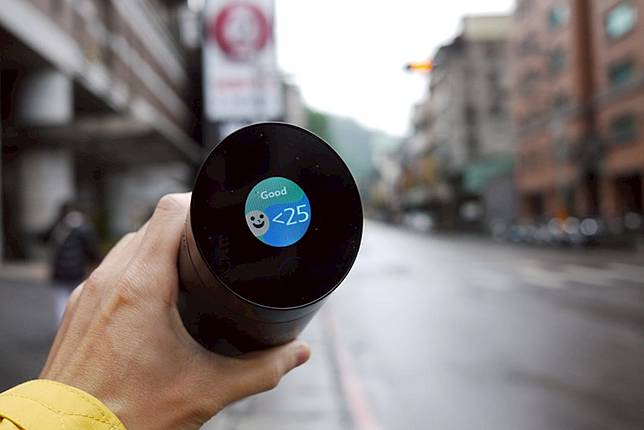 得益於它的內建電池,可以直接帶著趴趴走。首先我們先到新店山區,空山新雨後的情況下,AQI(空氣品質指數)數字小於25,Good