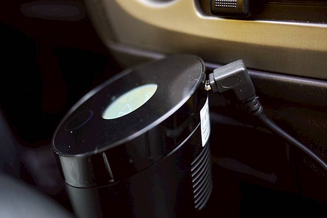 機身體積大約只和隨身保溫杯相同,另一個奧妙之處就是它也適合在車內空間使用,只需要接上車用電源,透過micro USB就能為Omcare供電(充電),而機身可以安安穩穩的放置在置杯架上。