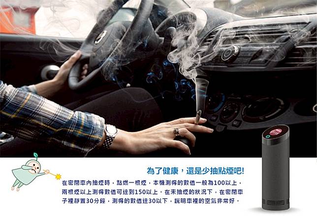 根據設計團隊實測的結果,在車內點一根煙,就可以讓AQI空氣品質指數,直接超過100以上