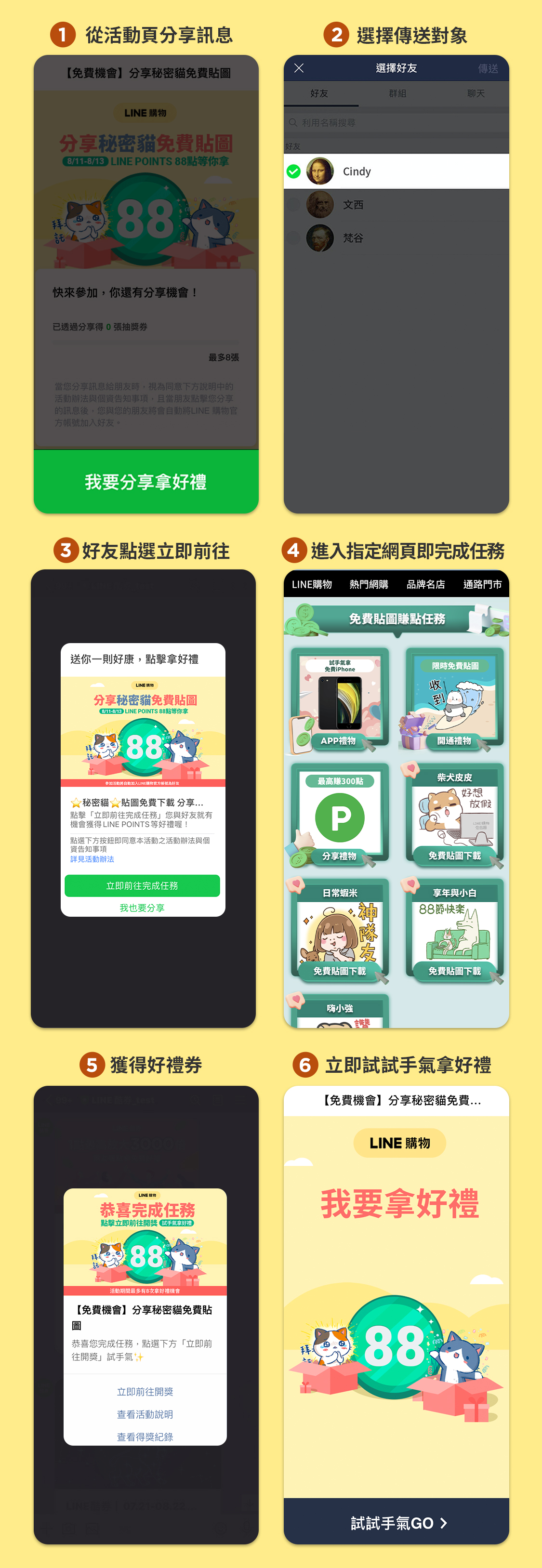 5. 分享給同1名好友,最高可獲得1次好禮,若要再獲得好禮請分享給其他好友。