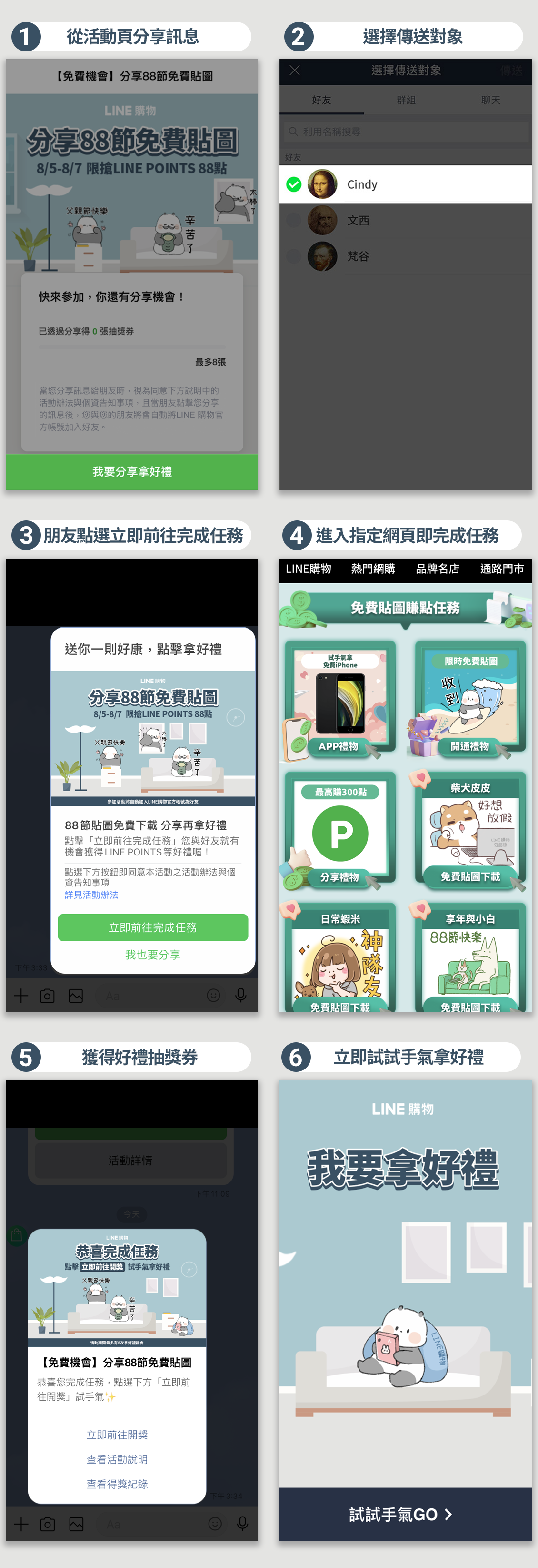 5. 分享給同1名好友,最高可獲得1次好禮,若要再獲得好禮請分享給其他好友。