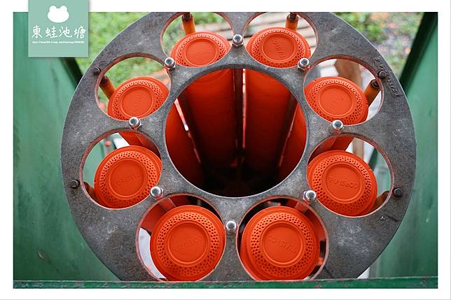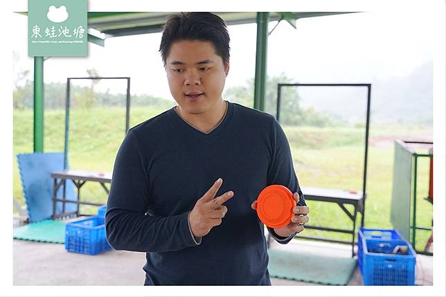 ▲這個橘色陶土製飛靶是我們等等要打的目標。(圖/東蛙池塘)