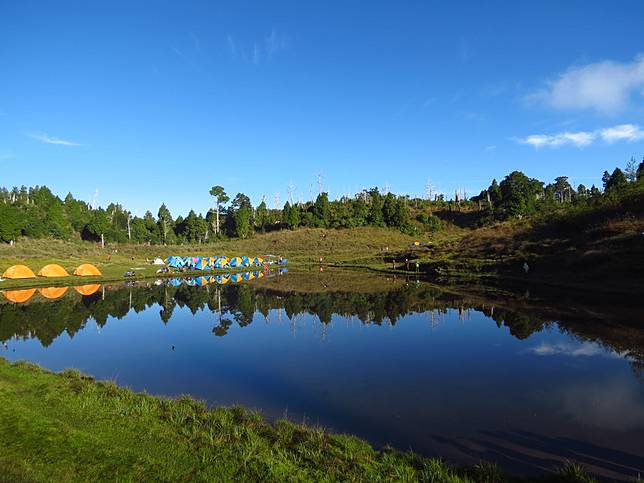 來到加羅湖露營,不只可以欣賞山林景緻,還能看到藍天青山倒映在湖面的秀麗美景。