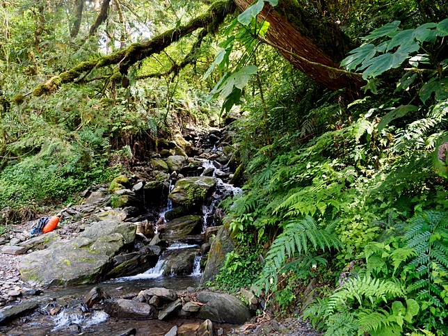 從巨木登山口開始就需要有點體力才能往下走,因為這段路常常需要翻閱神木的根部,同時也會有樹木因為雨後落石而傾倒,因此需要跨越許多攔腰折斷的樹枝。