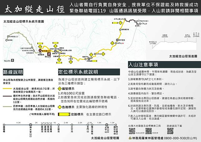 ▲太加縱走山徑圖。(圖/林務局羅東林區管理處)
