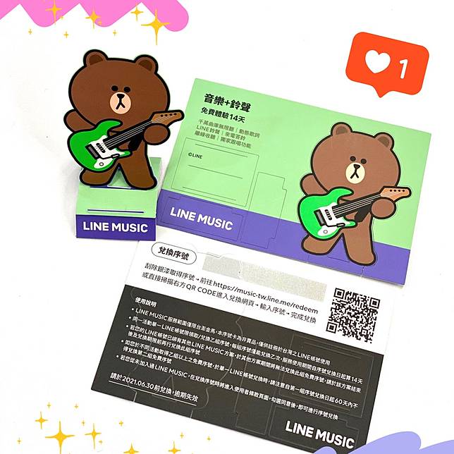 🔺前200名早鳥報名【熊大動滋動套票】組的朋友們,還可再獲得LINE MUSIC一週年限量【熊大立體音樂卡】14天版一張,一次擁有兩款熊大娃娃,再多暢聽14天!