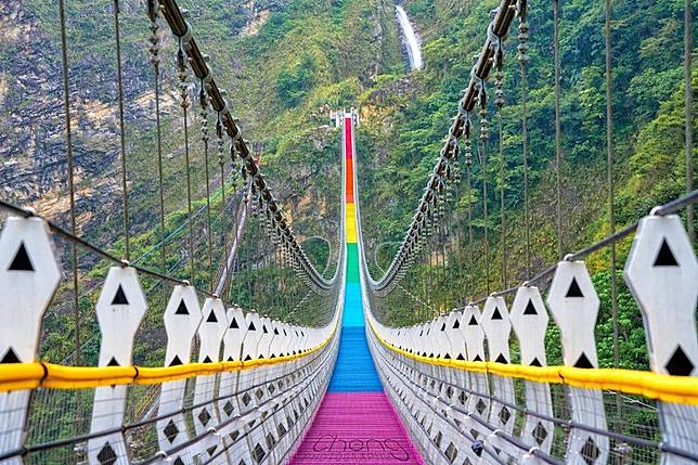 ▲雙龍瀑布七彩吊橋。(圖片來源:Instagram@cheng_19921201)