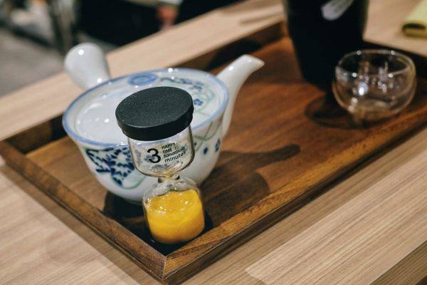 後面賓客就可以依照桌上的沙漏指示,不同的茶,需要有不同的時間刻度等待,以迎來茶香的濃郁甘醇。