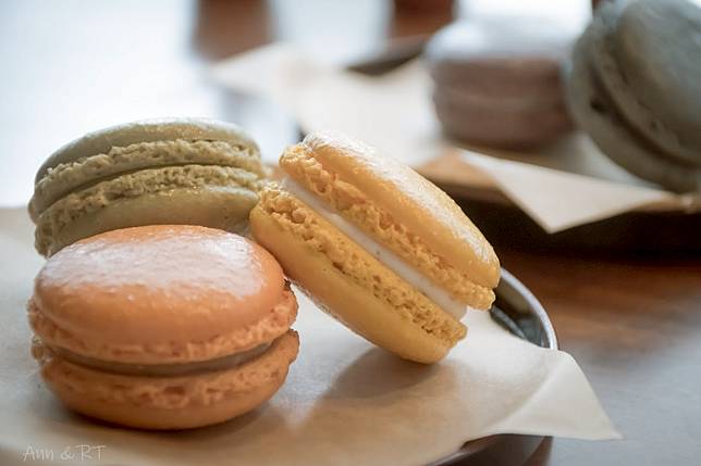 Rei café的馬卡龍非常的特別,使用無麩質(100%杏仁粉)、減糖、天然食材色素的配方製作,5種夢幻的顏色代表了不同的口味,日式抹茶、 摩卡咖啡、 檸檬、薰衣草、以及焦糖海鹽,外層酥脆內餡柔軟綿密,彈牙但是不黏牙,甜蜜卻不膩口,每一種都很好吃,Ann媽我原本並不愛吃馬卡龍,總覺得太甜膩了,但Rei café 的馬卡龍我可以一次吃掉3.4顆沒問題,2個孩子也好喜歡,尤其是藍色的焦糖海鹽,甜中帶點鹹,非常的特別,吃過一次後絕對會愛上!!搭配著咖啡一起享用更是完美!!