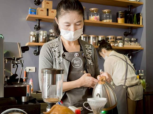 Rei café的咖啡職人是照片中這位美麗的闆娘與她的二女兒,原本是一位日文老師,店名的Rei也是由日文名字直接音譯而來,因為對於咖啡的熱愛與高品質要求,乾脆直接將家中一樓改裝成了一間咖啡店,連整間店的裝潢設計、布置都是自己來,十分的厲害!!!