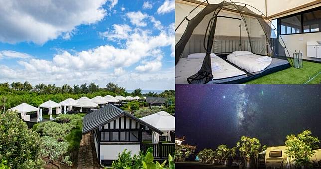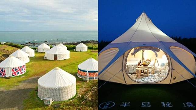 全台最北端的懶人露營園區「半島秘境」,位於半島岬角地形、擁有無敵海景與純白外型,更別說走路就能到沙灘的絕佳地理位置。帳篷還有特殊「開窗」設計,帳內也設有冷暖空調,即便待在裡頭耍廢,也能愜意眺望大海。