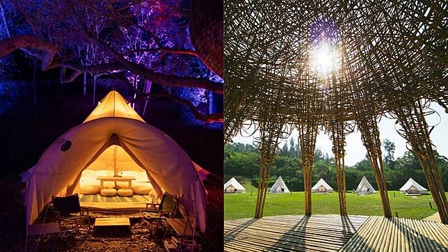 堪稱台灣豪華露營始祖的勤美學CMP Village,將露營結合高質感體驗課程與藝術美學創作,可愛外型的精靈帳、蓮花帳,不僅內部空間大,所需的生活用品更一應俱全,繽紛用色與竹編材質,使人立刻拋開煩躁心情與壓力。而到了晚上則會有絢爛燈光,宛如進入奇幻場域,是絕對要體驗過的豪華露營之選。