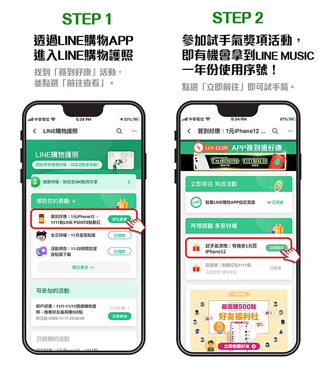 成功領取紅包後,您需透過LINE購物App前往合作商家下單,方可符合點數紅包使用條件及獲得點數回饋資格,請參閱點數紅包使用說明。