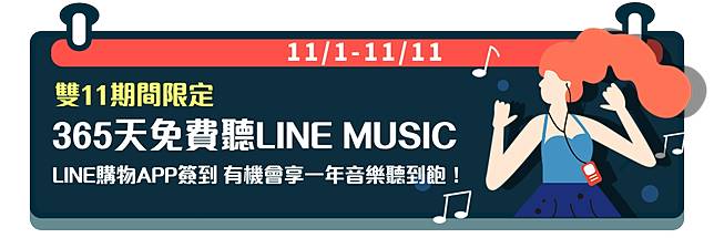 LINE購物|雙11 APP簽到搶好康 有機會享365天免費聽LINE MUSIC