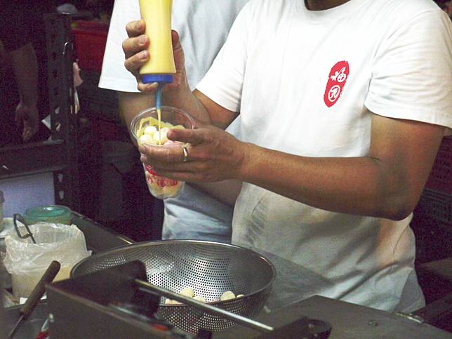 跟一般外頭機械製作的不同,老闆採用手工糯米湯圓,運用特殊比例調配,炸起來才不會軟塌。