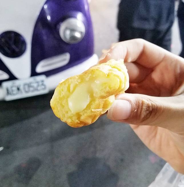 【現烤爆漿牛奶燒】乍看是輛普通的餐車,走近才發覺有驚奇。餐車裡放著一部巨大的機器,老闆用這部特殊機器來做「牛奶燒」,若電影《蒸氣男孩》裡也有賣雞蛋糕,那一定就是這個樣子!