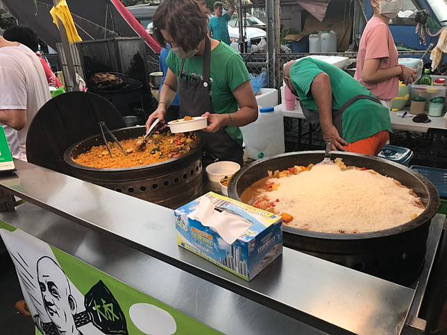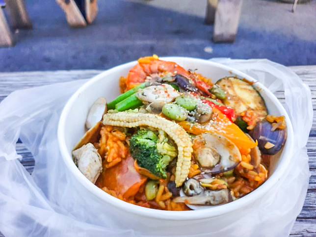 壓軸的是傳說中的海鮮燉飯,為什麼說是傳說中呢?因為每次來擺攤,排隊人潮都會多到嚇人,攤子前後都有人排隊,還要發放號碼牌才能購買,是真正的夜市傳奇。因為吃過道地的西班牙海鮮燉飯,所以知道這家燉飯有多厲害,幾乎只靠食材本身原味來調味,鹽巴的需求真的不多,而且一份居然只要100元,真的是相當便宜。