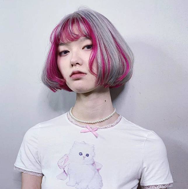 BlackPink 的Jennie在2020年底引爆一波瀏海撞色染,選擇搶眼的跳色組合,真的能讓妳氣場瞬間強大N倍!這款銀灰X桃紅真的太美啦,簡直短髮芭比嘛