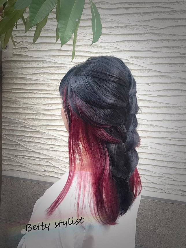 雙層染也非常適合綁公主頭系列的變化編髮,神秘深藍黑髮辮下竟藏了奼紫胭紅,夢幻指數破表!