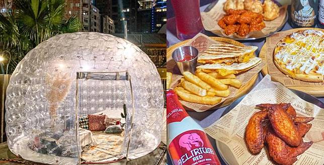 來到「MORR BAR」除了小酌一杯之外,一定要記得去戶外區拍超美的透明泡泡屋,目前雖然只開放拍照,暫時還不開放在裡面用餐,但是透明泡泡屋裡擺設十分有味道,在晚上燈光照映下十分夢幻與唯美,現在室內與室外都開放包場,戶外區拿來辦派對、慶生或是求婚都超適合!